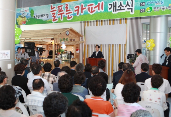 ‘늘 푸른 카페’는 지난해 평생학습원 개관과 더불어 평생학습원 이용자를 위한 새로운 휴게문화 공간을 제공하기 위해 노인 일자리 사업으로 발굴, 추진하게 됐으며, 지난 4월 수행기관과 카페 명칭을 공모하고 심사를 통해 좋은 이웃 노인복지센터가 선정됐다. 5월 사업장 설치와 함께 어르신 바리스타 교육·선발을 병행 추진했으며, 6월부터 본격적인 현장실습과 시음회, 사업장 홍보를 거쳐 이번 개소식을 가지게 됐다.카페는 20명의 어르신들이 지속적으로 근무하게 되며, 6개 조로 편성하여 교대로 근무하고 운영수익금은 재료비와 어르신들의 인건비로 지급된다.
