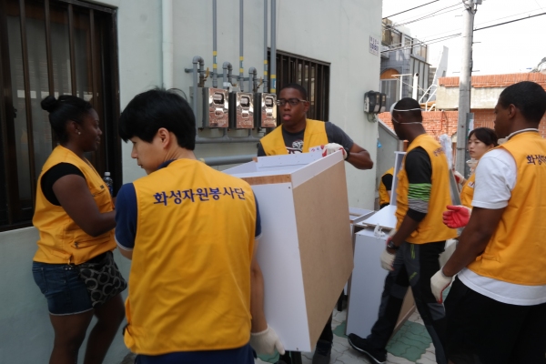 화성산업(대표이사 이홍중) 화성자원봉사단은 지난 26일 대구시내 노후주택을 방문해 대구시와 함께하는 '동고동락 1,000개의 약속 사랑의 집수리' 봉사활동을 실시했다. 이번 봉사활동은 미군부대 장병들도 동참해 도배 및 싱크대 보수, 교체 작업에 구슬땀을 흘렸다.
