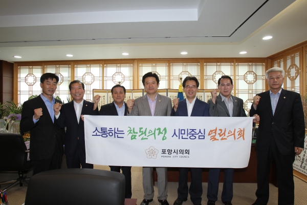 포항시의회는 7월 31일 제7대 전반기 의회의 의정슬로건을 ‘소통하는 참된의정, 시민중심 열린의회’로 선정했다고 밝혔다.