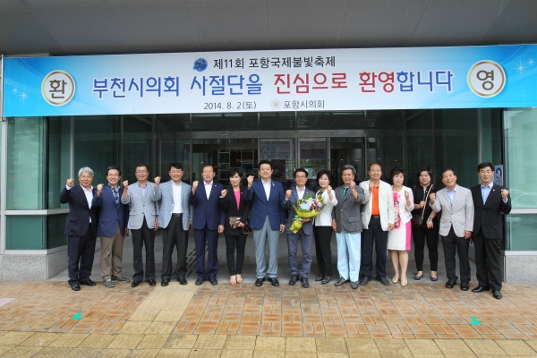 한편 포항시의회와 부천시의회는 2008년도부터 자매결연을 맺어왔으며, 이번 방문은 포항시의회의 초청으로 제11회 포항국제불빛축제에 축하사절단으로 참가했다.