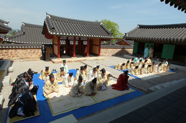 특히 이날 석전제에서 김병목 영덕군수는 초헌관이 돼 향을 피우고 폐백을 올리는 ‘전폐례(奠幣禮)’를 시작으로 5성위 앞에 축문을 읽고 헌관이 첫잔을 올리는 ‘초헌례(初獻禮)’를 봉행하고 성현들의 고귀한 뜻을 기렸다. 이는 예로부터 그 지역의 지방관이 초헌관으로 임명돼 제례를 올리던 풍속에서 유래한다.