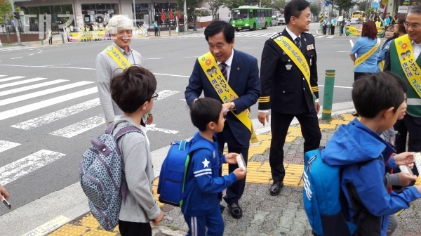 이날 캠페인은 어린이보호구역 내 안전한 교통문화 조성을 위해 운전자와 보행자의 무단횡단 금지, 신호준수, 안전벨트 착용 등의 기초질서 지키기 홍보 및 등교길 어린이들을 상대로 ‘우선 멈춰요, 좌우를 살펴요, 천천히 걸어요’라는 보행3원칙의 횡단보도 건너기 교육 등을 실시했다.
