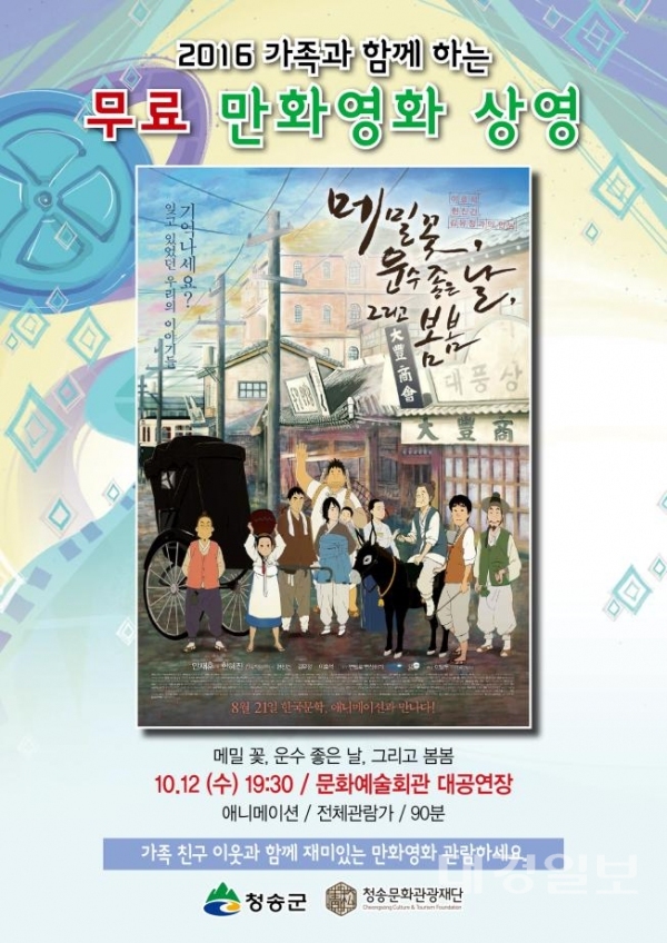 이번 10월 12일(수)에 상영 하는‘메밀꽃, 운수 좋은 날, 그리고 봄봄’은 한국을 대표하는 현대문학인 김유정의 <봄봄>, 이효석의 <메밀 꽃 필 무렵>, 현진건의 <운수 좋은 날>을 묶어 그린 작품으로, 20대의 사랑, 40대의 슬픔, 60대의 아련한 추억을 담아 남녀노소 모두가 즐길 수 있는 작품이다.