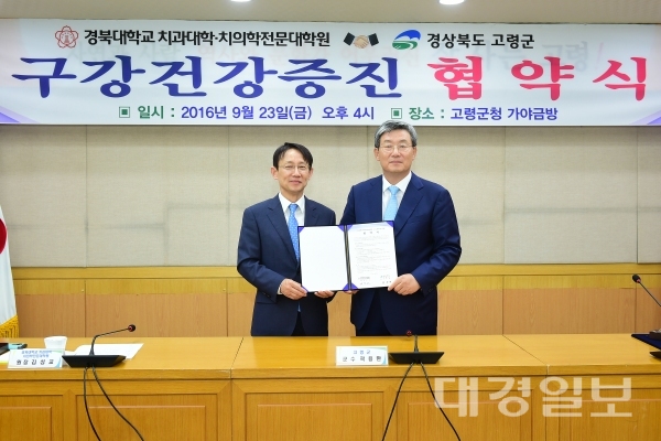 이번 협약은 고령군과 경북대학이 상호 협력하여 구강건강실태조사, 구강보건교육, 구강병 예방사업과 치과진료 등을 원활히 수행하도록 하고 있다.
