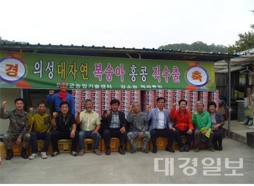 의성군강소농핵과류 회장인 안평면 대사2리 홍영교 씨가 7년전에 귀농해 남다른 열정으로 재배 기술로 생산한 복숭아(양홍장)를 26일 홍콩으로 192박스(2㎏)를 직수출했다.이번 첫 홍콩직수출은 복숭아 수급조절 뿐만 아니라 홍콩에 복숭아 직거래 수출을 함으로써 향후 의성산 농산품의 홍콩 직수출의 계기를 마련한 데에 큰 의미를 갖는다.