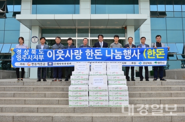 이웃사랑 한돈 나눔은 영주시에서 돼지를 사육하는 한돈 농가들이 조성한 기금 등으로 한돈 소비촉진과 함께 사회적 약자와 소외이웃들에게 도움을 주고자 마련한 것으로 이날 기증한 돼지고기는 관내 사회복지시설 등에 전달된다.