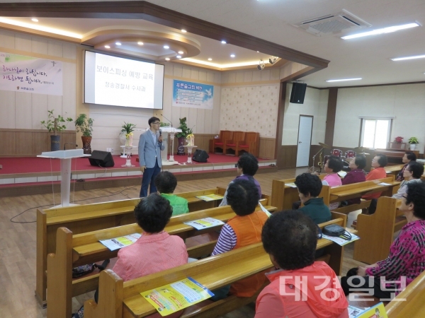 청송경찰서(서장 김원범)에서는 ‘16. 10. 4. 11:00~, 안덕면 소재 작은자의 집에서 노인대학에 참석한 50명 대상으로 전화금융사기·사이버범죄 예방 홍보 및 수사민원 상담을 실시했다. 청송관내 피해발생(11건) 현황 및 대출사기 유형과 예방 방법을 설명하고 홍보용 동영상 및 홍보전단지 ‘대출을 빙자한 대출사기 절대 속지마세요’를 배부 하였다 또한, 참석한 주민에게 수사관련 민원상담을 실시하고 언제든지 경찰서에 문의하면 상세히 안내토록 하겠다고 하였다.