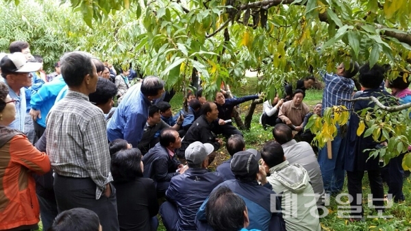 특히 가지치기 기술의 전수, 강사와 농업인간의 질의응답식 교육이 이뤄져 영농현장의 궁금증과 애로사항들을 해결하는데 큰 도움을 줬을 뿐 아니라 교육 후 관내 복숭아 농장으로 이동, 과원에서 직접 전정을 시연해 복숭아 농가에 실질적인 교육의 장이 됐다.