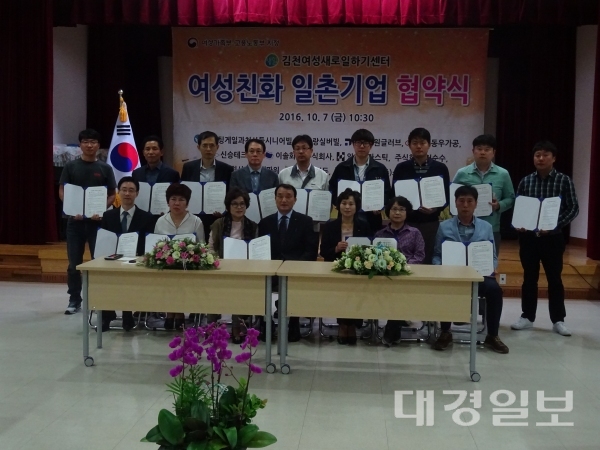 김천여성새로일하기센터는 2009년도에 여성가족부·고용노동부로 부터 지정받아 운영하고 있으며 여성친화 일촌기업 협약식을 실시하여 총67개 기업체와 협약을 체결했다.