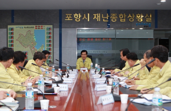 이강덕 포항시장은 회의에서 만일의 사태에 대비하여 대형 공사장 등 취약지구 순찰을 지속적으로 실시할 것과 태풍이 지나갈 때까지 긴장의 끈을 놓지 말고 재해 우려지역에 예찰활동을 강화하고, 단 한건의 인명피해도 발생하지 않도록 비상근무에 임할 것을 지시했다.