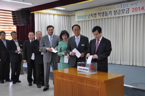 이 행사는 2001년부터 경북도교육청에서 전국 최초로 시작한 이래 2013년 까지 140억 5400만원을 모금 1,049명의 난치병학생에게 지원현재 경북도에는 376명의 난치병 학생이 도움을 받고 있고 고령지역에는 3명의 학생이 지원을 받고 있다. 특히 난치병 학생 돕기 모금 행사는 관내 유치원 초 중 고등학교 학생 및 교직원을 대상으로 오는31일까지 실시하며 주요 행사로는 유 초등학생을 대상으로 사랑의 우유곽 채우기와 중․고등학생 교육지원 청 사업소각급 학교별로 자발적인 성금 모금으로 모금액 전액은 경북도사회복지모금회에 기탁하게 된다. 한편도주완 교육장은 “난치병을 앓고 있는 학생들이 하루 빨리 병마와 싸워 이겨내고 학교로 돌아가 친구들과 마음껏 뛰어놀고 꿈을 펼칠 수 있도록 도움을 주고자 이번 행사를 개최하게 됐다.”며 많은 관심과 참여를 당부 했다.