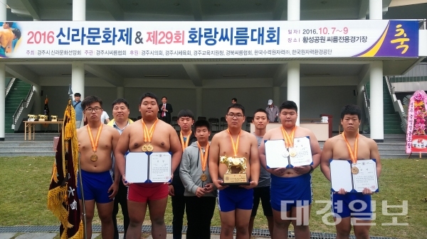 의성중학교가 지난 7일부터 9일까지 경주에서 개최된 제29회 화랑씨름대회에서 단체전 우승과 중량급 경기에서 임기도(3년) 학생이 1위, 박중현(2년) 학생이 2위로 입상하는 등 의성 씨름이 최강임을 다시 한 번 입증했다. 의성 군위/권호문 기자 homoon66@naver.com 다른기사 보기 저작권자 © 대경일보 무단전재 및 재배포 금지 당신만 안 본 뉴스 李대통령 “성과는 충분”… 재계 “국내 투자 확대하겠다” 신천지자원봉사단 대구지부, 대명역·관문시장 환경정화활동 실시 [부서탐방] 지역발전 대동맥...사통 팔달 교통망 확충 앞장 ‘구미시 도로 철도과’ 튀르키예서 독일인 일가족 숨져… 길거리 음식인가, 호텔 오염인가 [단독] 수능 끝났는데도 1시간가량 ‘대기’… 포항 두호고 수험생들 불만 ‘AI 버블’ 경계·美 금리 불확실성… 코스피 4000선 무너졌다 유재춘 이사장, 국회에 새마을금고 규제 완화 건의 李대통령 “성과는 충분”… 재계 “국내 투자 확대하겠다” 댓글삭제 삭제한 댓글은 다시 복구할 수 없습니다. 그래도 삭제하시겠습니까? 비밀번호 닫기 기사 댓글 0 댓글 접기 로그인 후 이용 가능합니다. 댓글 내용입력 비회원 로그인 이름 비밀번호 댓글 내용입력 댓글쓰기 계정을 선택하시면 로그인·계정인증을 통해 댓글을 남기실 수 있습니다. 회원 로그인 비회원 글쓰기 이름 비밀번호 자동등록방지 로그인 옵션 창닫기 주요기사 [이철우 칼럼] 행복을 유예하지 마라 [역사탐방] 일본서 꽃 피운 조선의 음식문화 해병특검, 공수처장·차장 기소··· 국회 위증 사건 방치 혐의 [속보] '6000만원 수수 혐의' 노웅래 전 의원 1심 무죄 與, 대미투자특별법 발의··· 美 관세 11월1일 소급 적용 與, 퇴직 대법관 수임 제한·법원행정처 폐지 추진… 법원 “사법권 침해” 반발