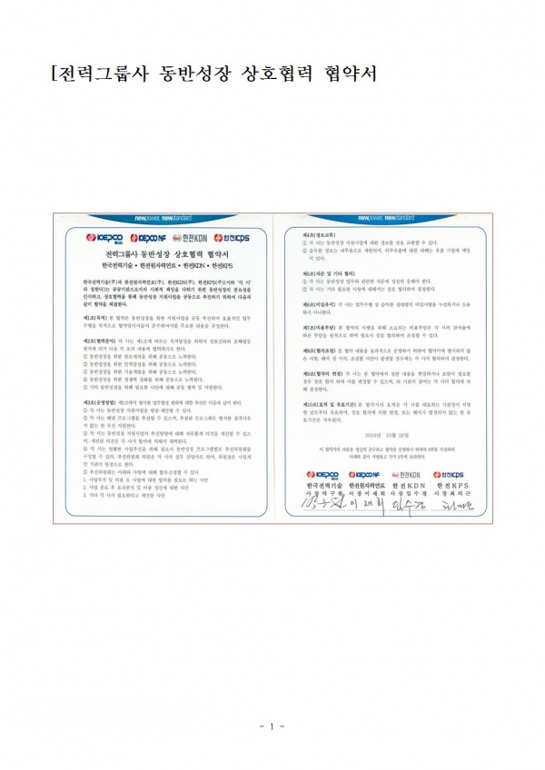 또한, 전력그룹 4개사가 동반성장의 중요성을 인식하고 상호협력을 통해 동반성장 지원사업을 공동으로 추진하는 것을 주요 내용으로 하고 있다.