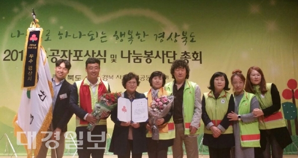 2012년 지역기반 나눔봉사활동 전개를 목적으로 발족된 경산시 나눔봉사단도 독거노인 이불지원사업, 착한가게 가입 홍보, 나눔카 공연을 통한 시민의 적극적인 참여를 이끌어 내는 등 모금, 배분, 문화활동 지원에 노력해온 공로를 인정받아 시와 마찬가지로 우수상을 수상했다.