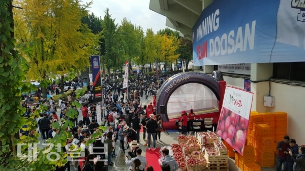 이번 한국시리즈 1차전 경기일에는 봉화사과 무료증정과 SNS 인증샷 이벤트로 잠실야구장을 방문한 야구팬들을 맞이했다.