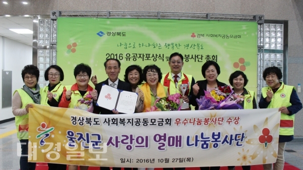 울진군은 희망2016 이웃돕기 성금모금에서 목표액 1억9500만원을 훨씬 웃도는 4억2200만원(216%)을 모금하는 실적을 올렸으며, 기부, 나눔 문화 실천에 기여한 공을 인정받아 2016 경북 사랑의 열매 우수 시군으로 선정돼 기관 표창을 받는 영광을 안았으며,