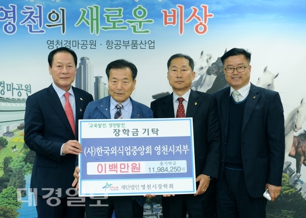 외식업중앙회 영천시지부는 매년 지역 축제 시 음식점 운영으로 행사를 지원하고 있으며, 어려운 이웃을 위한 봉사활동에도 꾸준히 참여하며 나눔을 실천하고 있다. 이번 기금은 지난 9월 30일부터 10월 3일까지 개최된 ‘영천한약과일축제’ 먹거리 장터에 참여한 입점업소가 수익금의 일부를 지역우수 인재양성을 위해 기탁한 것이다.
