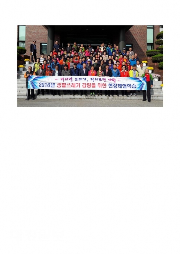 신장호 생활환경과 과장은 참석한 시민들에게 “연중 막대한 예산이 쓰레기 처리비용으로 들어가고 있으며 주민이 쓰레기를 분리하여 배출하면 많은 예산과 자원을 절약할 뿐만 아니라 환경도 보호할 수 있다고 강조하고 생활 쓰레기 줄이기에 동참해달라”고 요청했다.