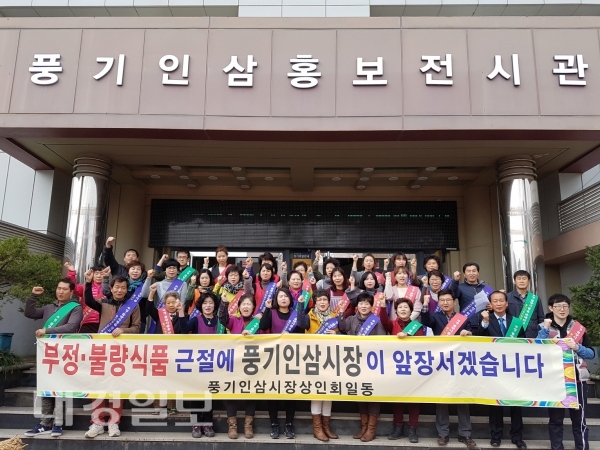 최근 일부업체가 만든 홍삼농축액이 허위표시라는 언론보도와 관련해 풍기 인삼시장 상인회 회원 50여 명, 풍기읍, 영주시 축산특작과 등이 함께해 허위 표시된 부정·불량식품 제조 및 판매근절에 대한 자발적 다짐 결의문 낭독으로 결의대회를 가졌다.