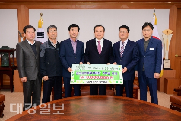 이날 시청사 접견실에서 김남희 건설안전국장(김토회 고문)을 비롯한 정해명 김토회회장(건설개발과장) 및 회원들은 “하반기 재정집행 등 현안 업무에 매진하고자 김토회 회원 화합행사를 대신하여 지역의 우수한 인재육성과 교육발전에 적극 동참하자는 회원들의 마음을 모아 장학기금을 인재양성재단에 기탁하게 됐다”고 말했다.