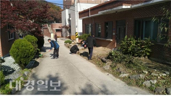 이번 활동은 김천시에서 정기적으로 실시하는 2016년도 하반기 자원봉사활동 일환으로, 임상봉 건축디자인과장 이하 직원 9여명은 시설을 방문해 곳곳의 쓰레기를 치우고, 유리창 청소 등 주변 정비를 했다.