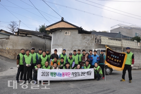 이날 봉사에는 세왕금속 허준 회장을 필두로 임직원 50여명이 행정기관의 추천을 받은 20세대에 연탄 300장씩 총 6000장과 겨울을 따뜻하게 보낼 수 있는 내복 및 간식을 전달했다.