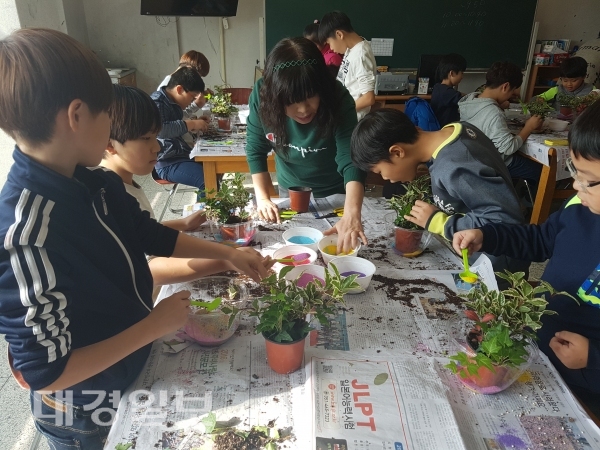 원예치료사 주윤겸강사의 지도 아래 진행된 이 체험은 친구들, 선후배가 함께 공동작업을 통하여 서로 협동하는 경험을 해봄으로써 학교폭력 예방을 목표로 실시됐다.
