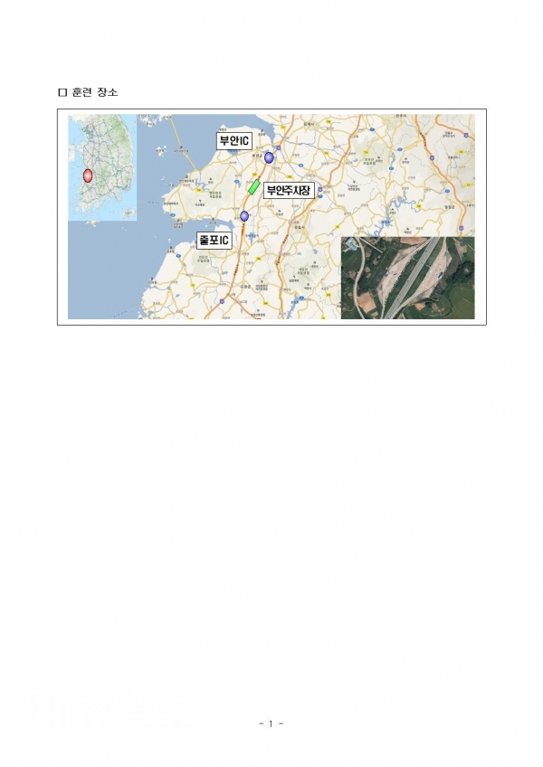 훈련 중 부안주차장 앞 1.0km 구간은 양방향 본선통행이 차단된며 훈련시간대 이 구간을 이용하는 차량은 부안주차장 광장부를 우회하여 통행할 수 있다.