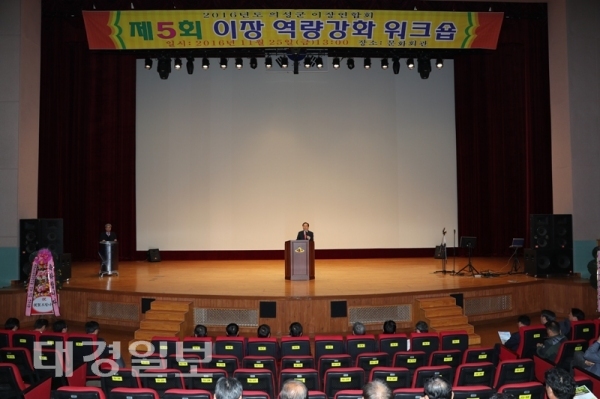 이날 18개 읍면 400여명의 이장들이 참석한 가운데 지역 민요가수와 연주단의 연주를 시작으로 그동안 고생한 이장들에게 표창패를 수여하고 특별초빙 강사 남유진 구미시장과 김주수 군수의 특강 순으로 이어졌다.