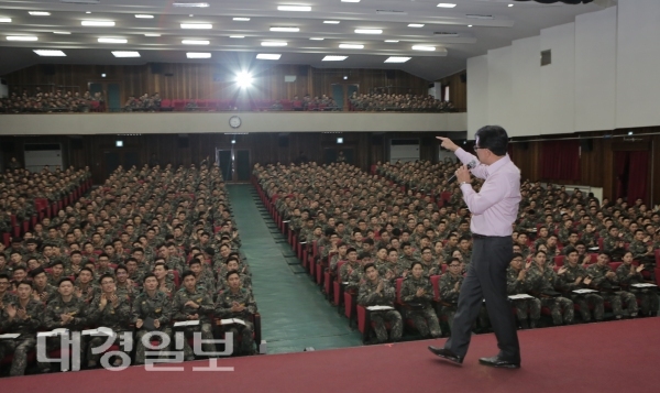 학교장과 사관생도 등 1,100여 명을 대상으로 학교내 충성관에서 가진 이날 강연은 ‘차별화가 살 길이다’라는 주제로 진행됐다.