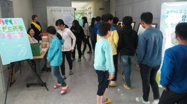 포항시 북구정신건강증진센터는 12일 ‘마음건강학교 만들기 마인드 존중(Mind Zone中)’ 시범학교로 선정된 항도중학교에서 정신질환에 대한 부정적인 편견을 해소하기 위한 캠페인을 실시했다. 이승현 기자