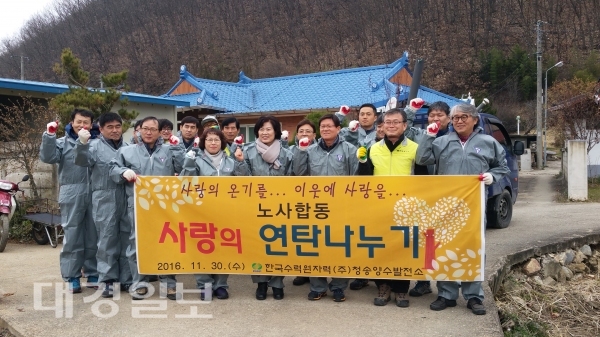 이날 양수발전소 직원과 협력업체 직원 16명, 희망복지지원단 직원 4명과 함께 1,000장의 연탄을 직접배달 하였으며, 관내 어려운 가정을 대상으로 총 6,000장의 연탄을 지원하여 추운겨울 따뜻한 사랑의 온기를 전하였다. 배달에 참석한 관계자는 “평소 여러 가지 봉사활동에 참여 하고 있으며, 연탄배달 등을 통하여 어려운 이웃들이 조금이나마 위로가 되었으면 좋겠다고 ”고 했다.
