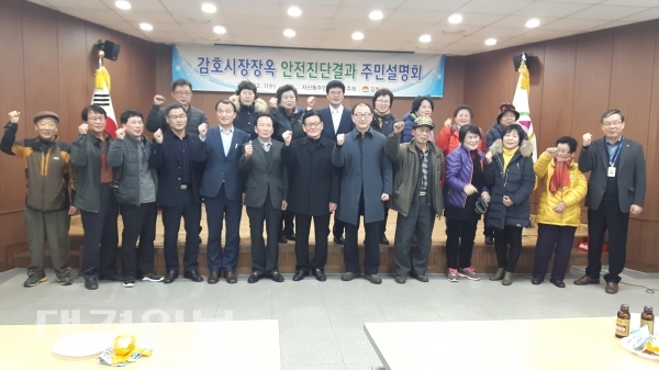 이번 설명회는 지난 9월 30일부터 시행된 감호시장 공설장옥 안전진단이 완료됨에 따라 진단결과를 주민 및 사용자에게 알리기 위해 열렸으며, 장옥 거주자를 포함, 시의원, 관계공무원 등 30여명이 참석, 열띤 분위기 속에서 진행됐다.