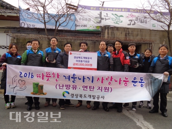 특히 경북개발공사는 매년 9000만원 상당의 후원금으로 경북도내 정부지원을 받지 못해 복지사각지대에 놓여 어려움을 겪는 소외계층에 연탄배달, 난방유, 라면, 생필품 지원 등을 지속적으로 추진하고 있다.