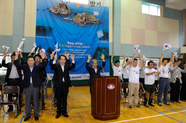 독도를 지역구로 두고 있는 새누리당 박명재 의원(포항남·울릉)은 15일 울릉학생체육관에서 열린 제69주년 광복절 기념행사에서 ‘전 국민 독도 밟기 운동’선포식을 가졌다.