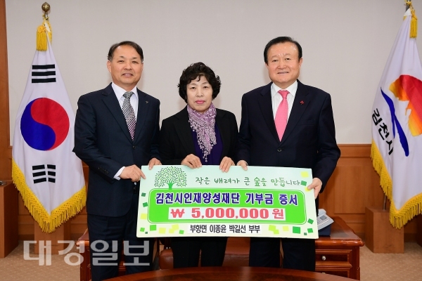 이에 박보생 김천시인재양성재단 이사장은 “지역의 미래를 위한 두 분의 정성에 많이 감사드린다며, 기탁해 주신 귀한 장학기금은 우리 지역의 우수인재 육성·발굴을 위해 소중하게 사용되도록 최선을 다하겠다” 고 감사의 마음을 전했다.