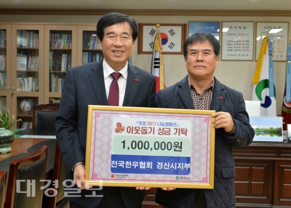 최영조 경산시장은 “어려운 이웃들이 경산 한우의 굳센 기운을 받아 어려움을 잘 이겨낼 수 있을 것”이라며 “연말연시 나눔 행사에 앞장서고 있는 경산시 농축산단체에 감사하다”고 밝혔다.