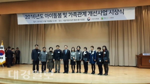 의성군건강가정·다문화가족지원센터가 여성가족부가 주최하는 ‘2016년 아이돌봄 서비스기관 평가’에서 전국 최우수기관으로 선정되었다고 25일 밝혔다. 이번 평가는 전국 아이돌봄서비스 제공기관 217개소를 대상으로 서비스성과와 제공, 아이돌보미 확보와 활동참여 등 총 4개 평가영역과 서비스기관의 사업수행 기여도 가점을 포함했다.