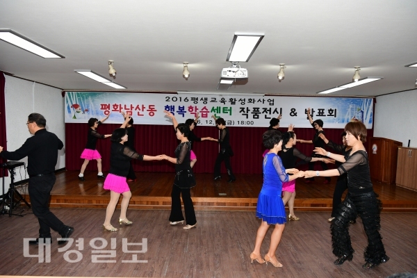 이어 댄스스포츠(A팀, B팀), 노래교실, 코아요가팀에서는 지금까지 배운 실력을 알리는 발표회와 지역주민이 함께하는 화합의 합창으로 마무리 했으며 이날 학습 발표는 수준 높은 공연으로 주민 모두가 하나 되는 한바탕 축제의 분위기를 만들었다.