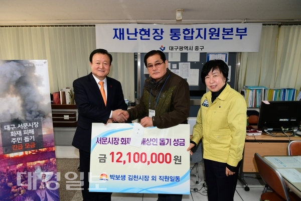 지난 11월 30일 갑작스런 화재로 1,000억원 이상의 손실을 입은 대구 서문시장 3,000여 명 상인들의 피해가 조속히 복구되길 기원하며 김천시도 이에 동참을 했다.