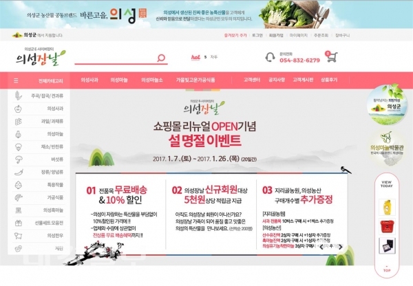 특히 ‘의성장날’쇼핑몰은 최신 트렌드에 맞추어 시스템을 리뉴얼하고, 최근 판로대세로 자리 잡고 있는 모바일샵을 신규로 구축해 고객들이 언제 어디서든 손쉽게 구입할 수 있도록 시스템을 정비·보완해 지난 2일 새 단장 오픈했다.
