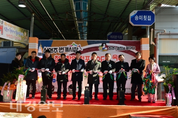 영주시는 지난 13일 신영주번개시장에서 신영주번개시장 청년상인 창업사업단과 함께 영주지역 청년들의 일자리 창출과 전통시장 활성화의 일환으로 준비해온 청년상인 창업 점포 개점식을 가졌다.